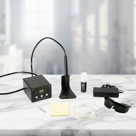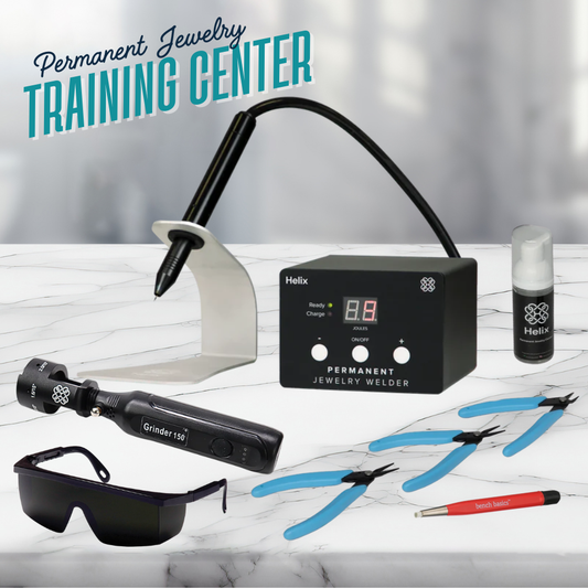 This is a complete, ready-to-go package that includes the Helix welder, a full professional starter tool kit, and comprehensive online training to help you step confidently into your permanent jewelry business.